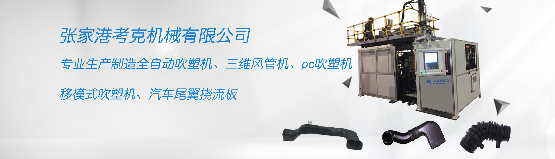 在塑料機械領域,考克機械生產吹塑機、全自動中空吹塑機、PC專用吹塑機、移模式吹塑機、三維風管機、汽車尾翼撓流板吹塑機等。公司擁有一批在塑機行業超過二十年經驗的人,和一個完善的售后服務團隊。基于良好的信譽和一流的服務,我們的產品不僅覆蓋國內30個省份并遠銷國外80多個國家。每年產量400多套,獲得國內外客戶高度贊揚和信賴。